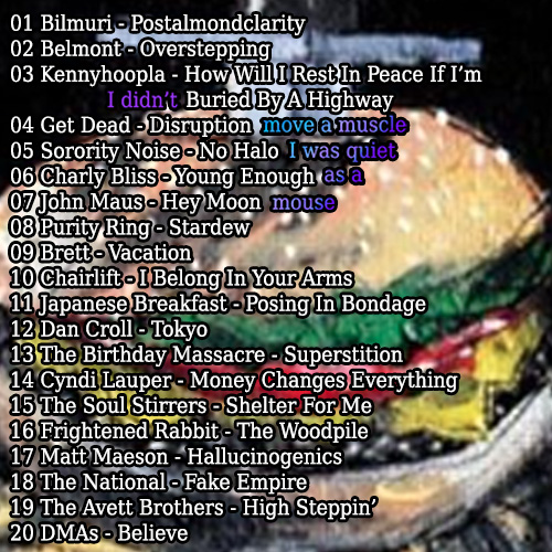 This page is a throwback to the days when my friends and I would compile mixes of favorite songs to share with each other on cassette tapes and CD-Rs.